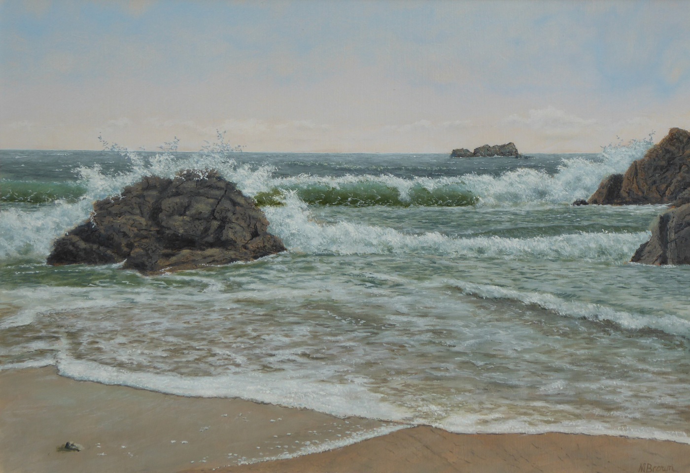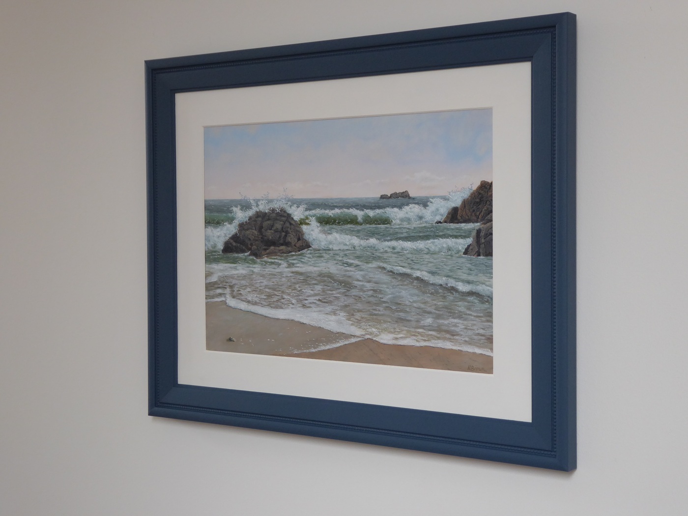 Beach Waves, Jersey Oil painting £350 Add to Cart Original artwork. Oil on panel. Image size 13" x 9" excl frame.Outer frame size 18.5" x 14.5"
